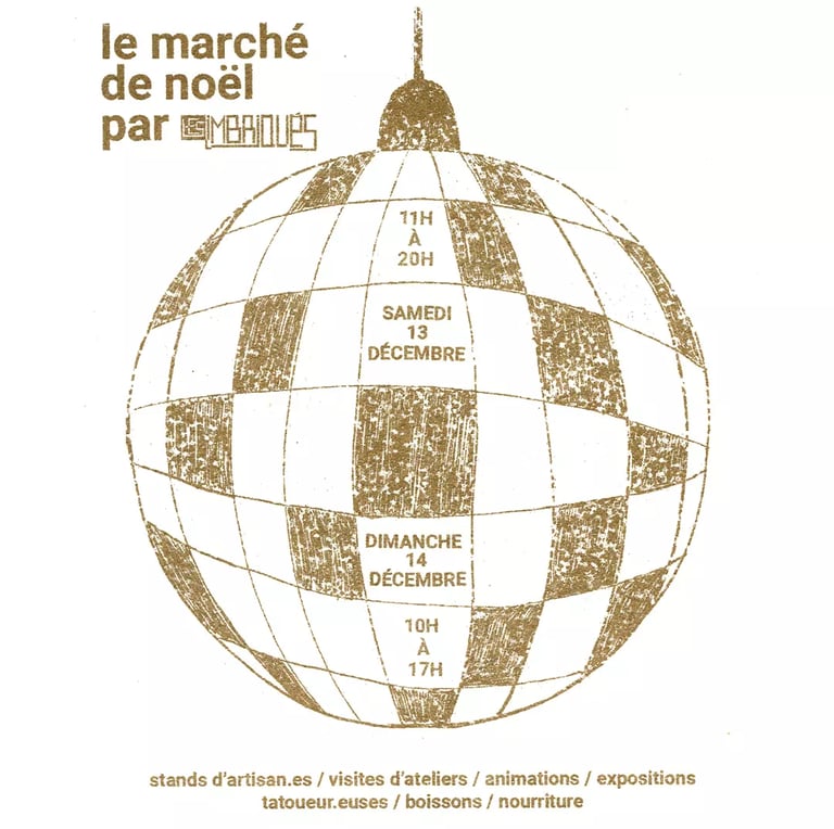 On se retrouve au chaud et au sec au milieu des ateliers des résident·es et de l'Atelier des Bricoleurs pour un marché de noël créatif et réconfortant.