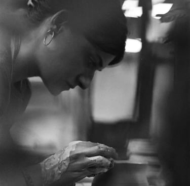 Création des pièces décoratives et utilitaires en grès, allant de l'objet unique à la petite série. Textures de la terre, émaux aux couleurs douces et motifs rythment ses collections. Travail à la commande et cours d'initiation au tour et au modelage.